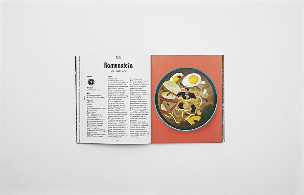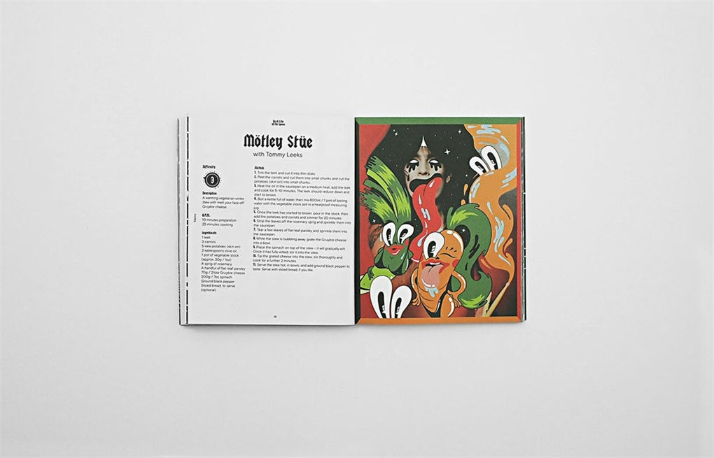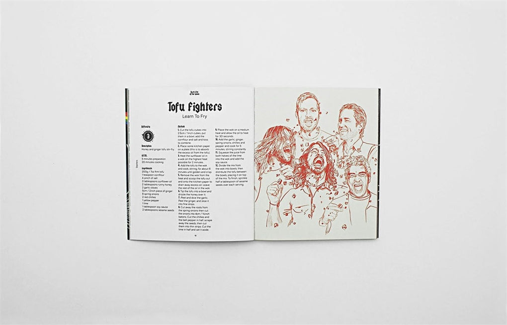 Dark Side of the Spoon: The Rock Cookbook features thirty recipes inspired by some of the most renowned rock acts of today and yesteryear. The dishes are accompanied by exclusive artworks from thirty top illustrators. Catering for cooks of all abilities and tastes, this book will help you master a wide range of starters, mains and desserts – including Smashing Pumpkin Pie, Fleetwood Mac and Cheese and Primal Bream.
