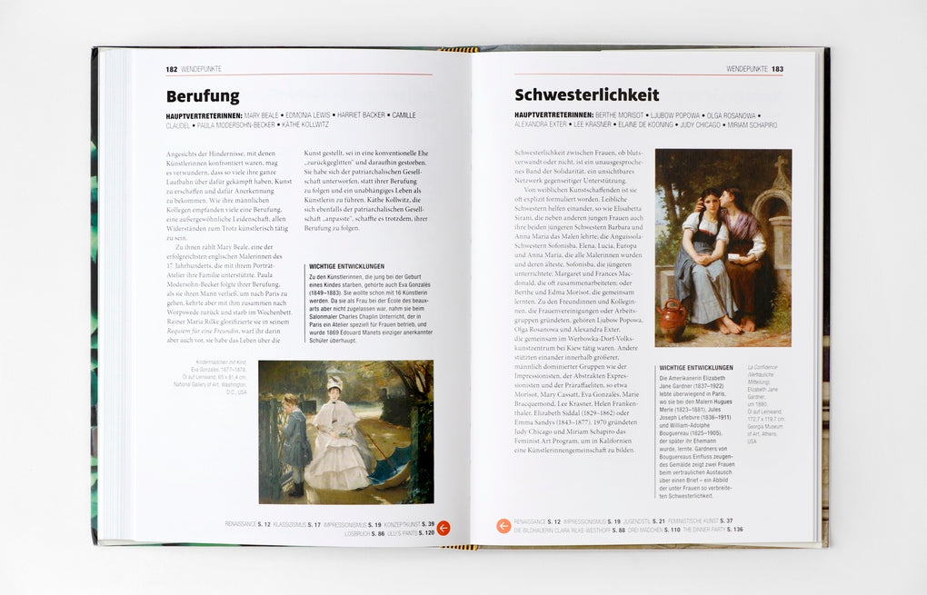 Die Künstlerinnen erzählt verständlich und prägnant von den Durchbrüchen, die Frauen beim Kampf um die Gleichstellung mit männlichen Künstlern erzielt haben, den wichtigen Beiträgen, die sie zu männlich dominierten Kunst-Bewegungen geleistet haben und von den vergessenen und verborgenen Künstlerinnen, die jetzt endlich gewürdigt und deren Beitrag zu unserer Kulturgeschichte nun anerkannt werden.
