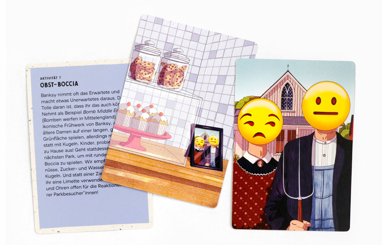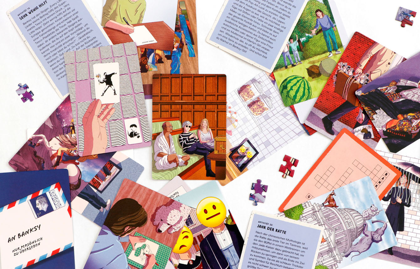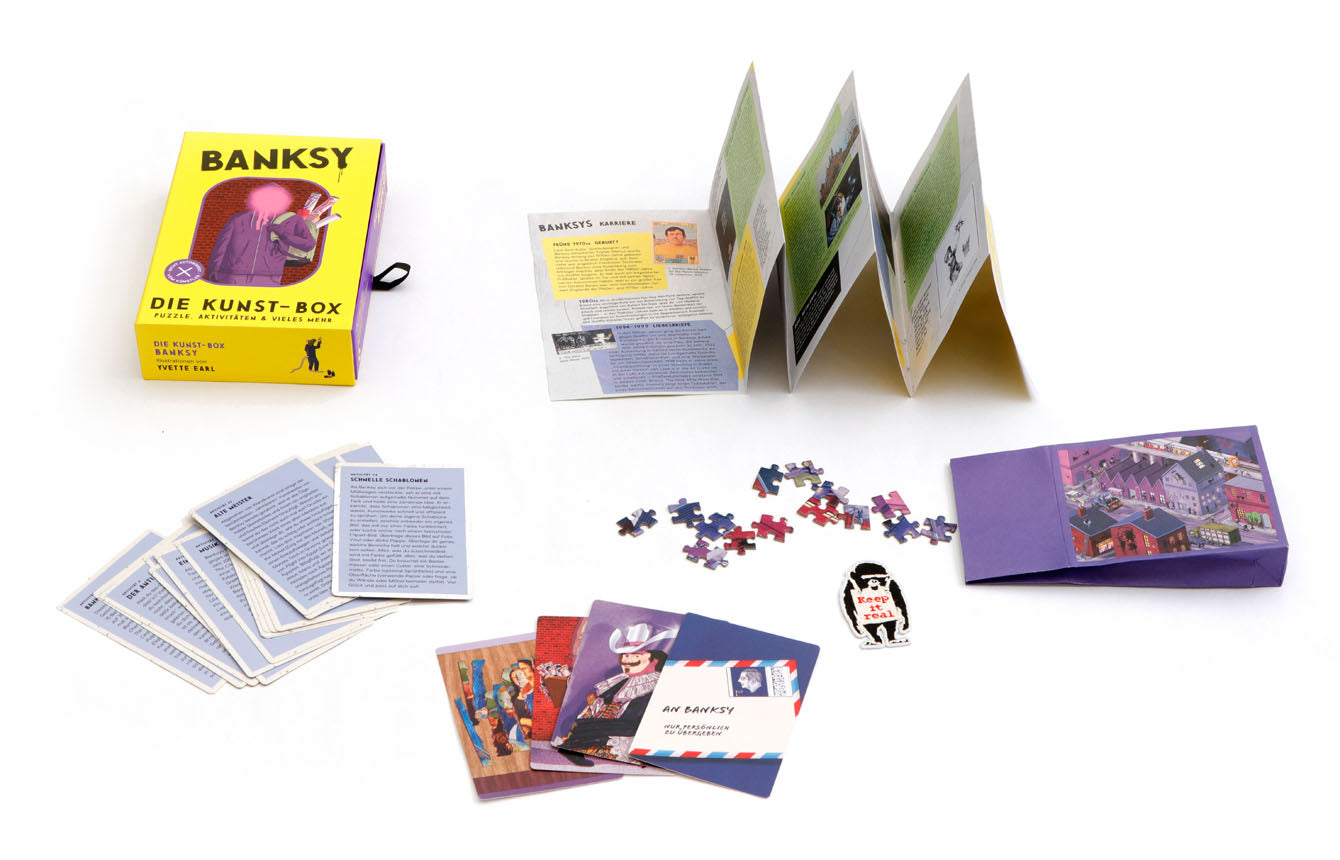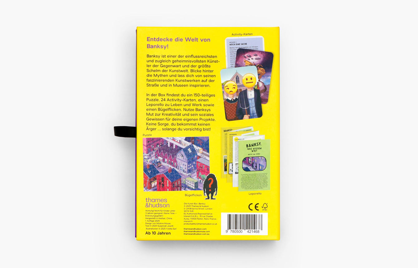 Die Kunst-Box enthält 24 Activity-Karten, ein 150-Teile-Puzzle, ein Bügelpatch und ein Leaflet.