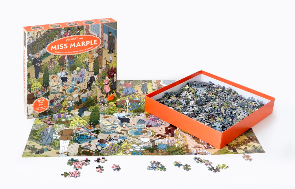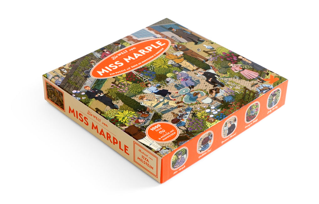 Könnt ihr Miss Marple helfen, das neueste Verbrechen im malerischen Dorf St. Mary Mead aufzuklären? Vielleicht müsst ihr ihr treues Fernglas benutzen, um alle Hinweise in dieser Gartenparty-Szene zu entdecken, in der mehr als nur eine Mordwaffe unter dem Tee, den Torten und den vornehmen Gästen versteckt ist! Findet in diesem 1000-Teile-Puzzle all eure Lieblingscharaktere aus den beliebten Miss-Marple-Romanen von Agatha Christie wieder und taucht ein in ihre Welt voller spannender Hinweise und Kriminalfälle!