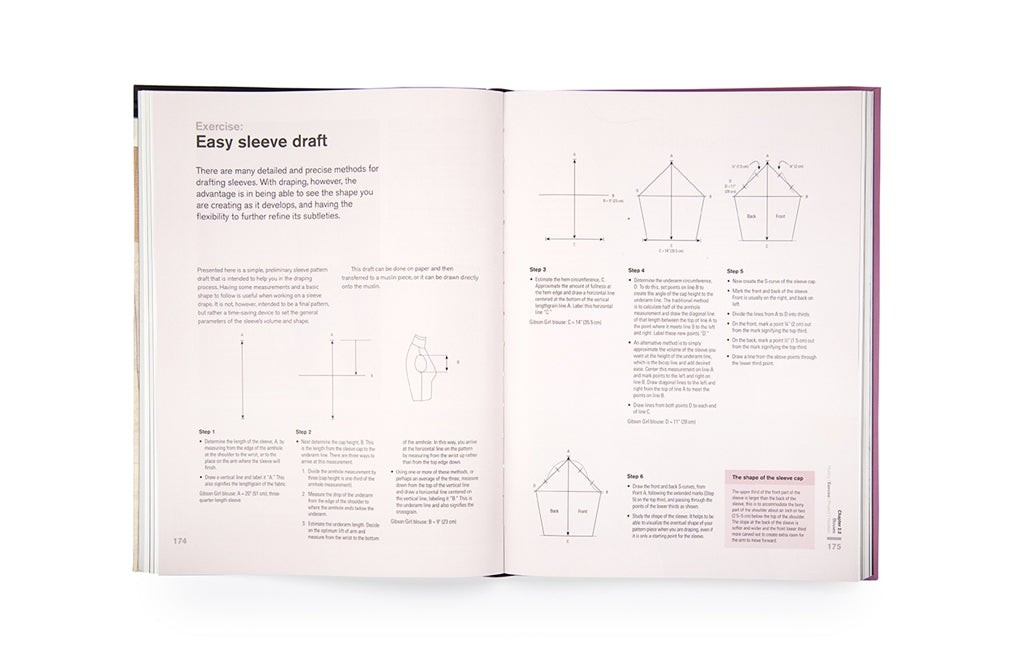 Starting with the basics of preparing the dress form and fabric, the book advances through pinning, trimming and clipping, and creating shape using darts and tucks, to adding volume using pleats and gathers, and handling complex curves. Advanced skills include how to use support elements such as shoulder pads, under layers and petticoats, and how to handle bias draping.
