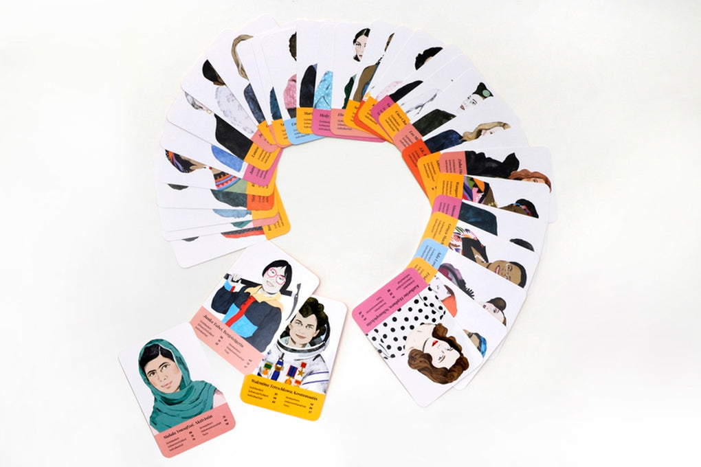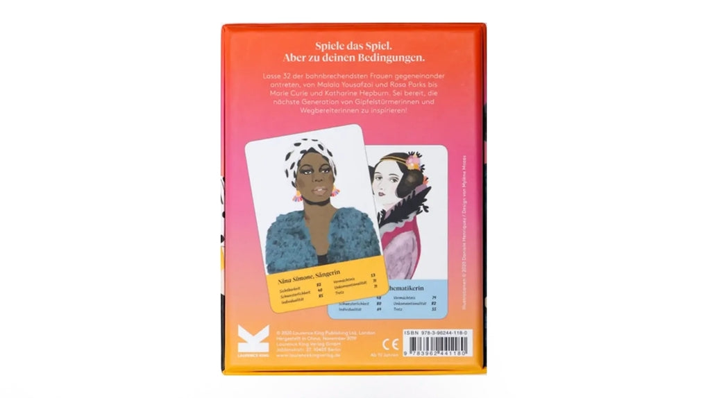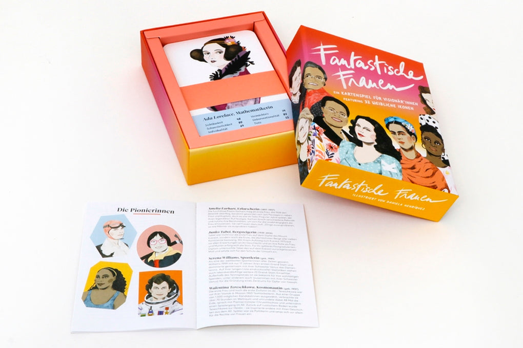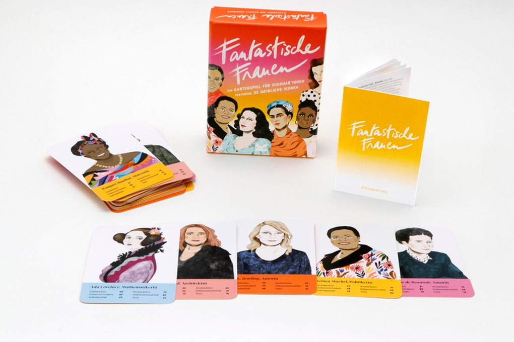 Frauenpower weltweit: Fantastische Frauen ist ein klassisches Trumpf-Quartett mit inspirierenden Frauen aus den Bereichen Kunst, Wissenschaft, Literatur, Aktivismus und Film: 32 der mutigsten und bahnbrechendsten Frauen treten in sechs Kategorien gegeneinander an. Wer war unkonventioneller? Marie Curie oder Ada Lovelace? Wer trotzte den Gegebenheiten stärker? Rosa Parks oder Malala Yousafzai? Seid bereit und inspiriert eine neue Generation kraftvoller Gipfelstürmer*innen und Wegbereiter*innen! Mit Kurzbiografien und fabelhaften Portraits der Fantastischen Frauen.