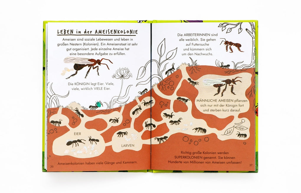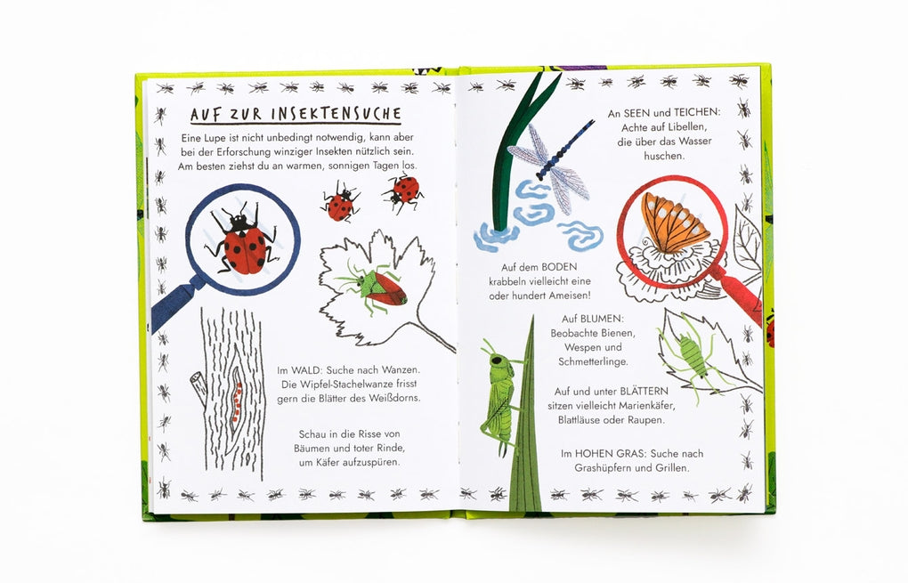 Nina Chakrabarti stellt euch in diesem taschenformatigen Naturführer die faszinierende Welt der Insekten vor: Kinder erfahren so einiges über Bienenstöcke, Ameisenkolonien und Metamorphosen und lernen außerdem, wie sie ein Insektenhotel bauen können oder was der Unterschied zwischen Tarnung und der sogenannten Mimikry ist. Mit farbenfrohen Illustrationen, verblüffenden Fakten und tollen Vorschlägen zu Outdoor-Aktivitäten wird dieses Büchlein zum perfekten Begleiter für angehende Insektenforscher*innen!