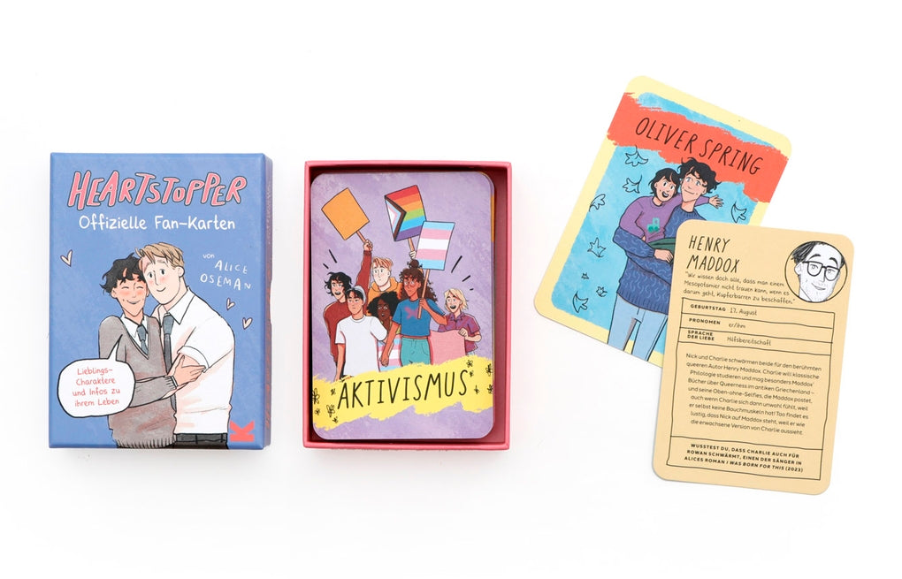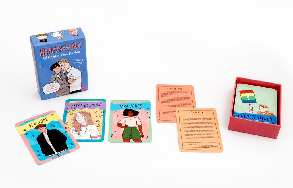 Dieses offizielle Fan-Kartenset enthält 42 illustrierte Karten, die die unvergesslichen Charaktere von Alice Oseman zeigen. Gewinnt exklusiv neue Einblicke hinter die Kulissen eurer Lieblingsfiguren und lasst euch von weiteren Themenkarten zu Gespra?chen u?ber wichtige LGBTQ+-Themen aus den Bu?chern und der Netflix-Serie anregen!