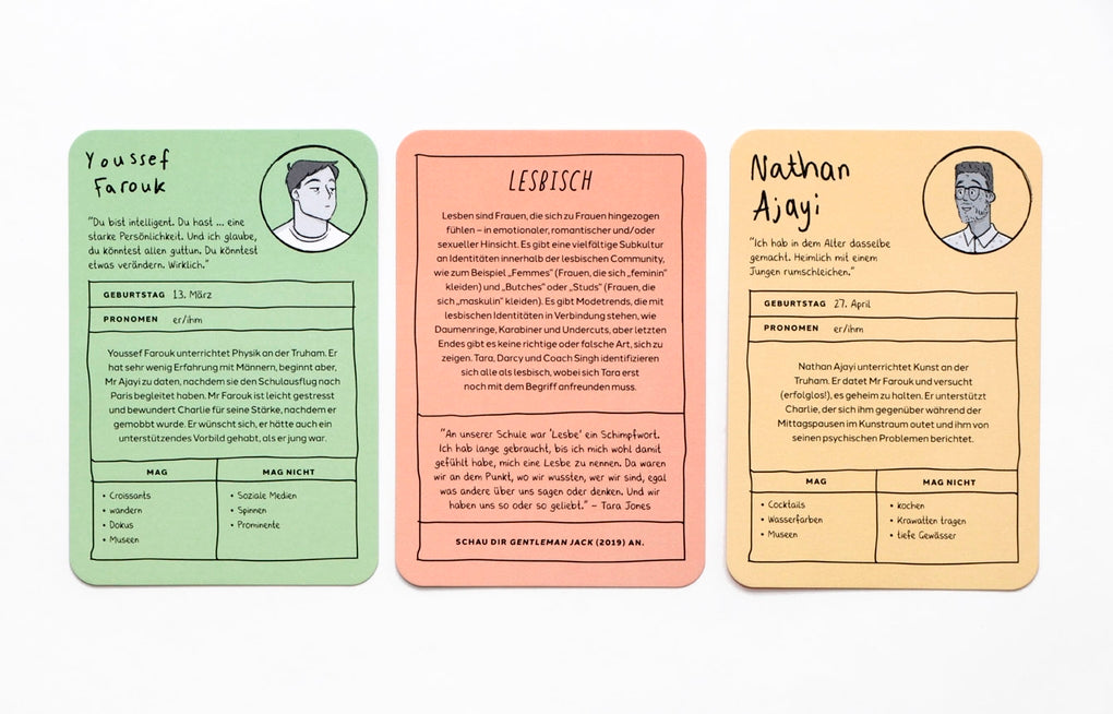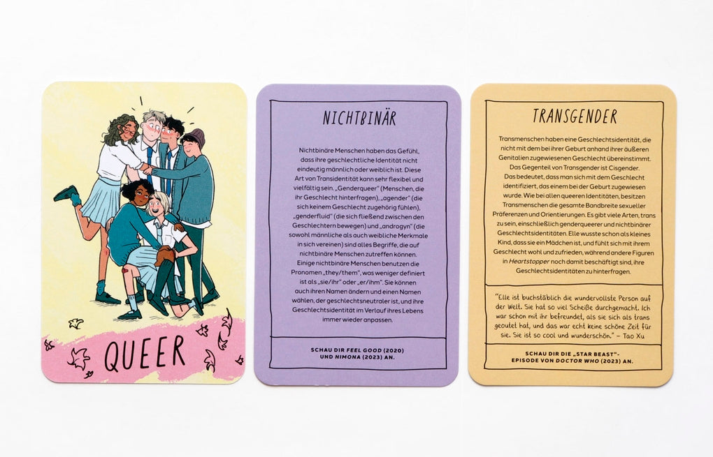 Neben dem Fan-Charakter der Karten bietet dieses Kartenset mit Illustrationen aus den Büchern (nicht nur) jungen Menschen unterstützende Anleitungen und hilfreiche Möglichkeiten, sich selbst und die Welt um sie herum besser zu verstehen, sondern die Karten können euch auch helfen, Gespräche mit Gleichaltrigen, Erwachsenen und Lehrer*innen zu beginnen.
