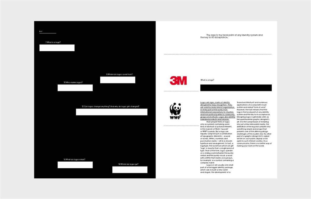 The book contains a vast visual collection of over 1,600 symbols and logotypes, including 300 brand new logos. All the logos are grouped into visual categories such as crosses, stars, crowns, animals and people, and are shown in black and white to further emphasise the visual form. The logos are from a diverse range of companies and includes design masters such as Paul Rand and Saul Bass alongside some of the most exciting work from contemporary designers.
