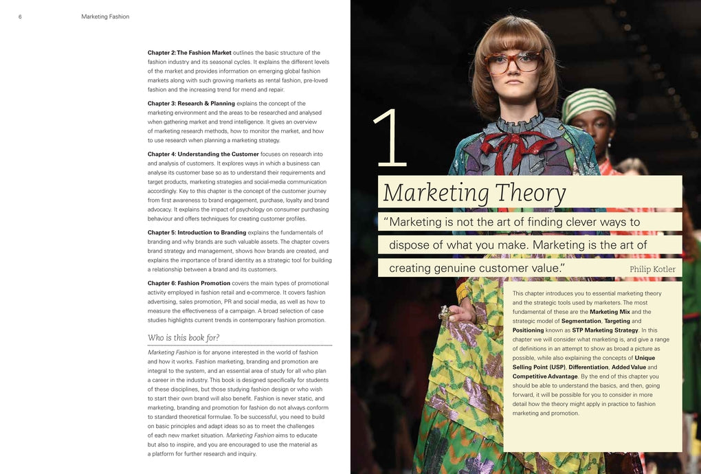 Marketing Fashion is a practical guide to the fundamental principles of marketing, branding and promotion, from creating a customer profile to developing a brand identity. The book explains key concepts and illustrates how they are applied within the global fashion and retail industry, from haute couture to the mass market.