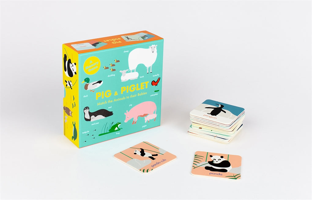 Pig and Piglet makes learning fun, adding an educational element to the traditional memory game as players learn the names of animals and their offspring.