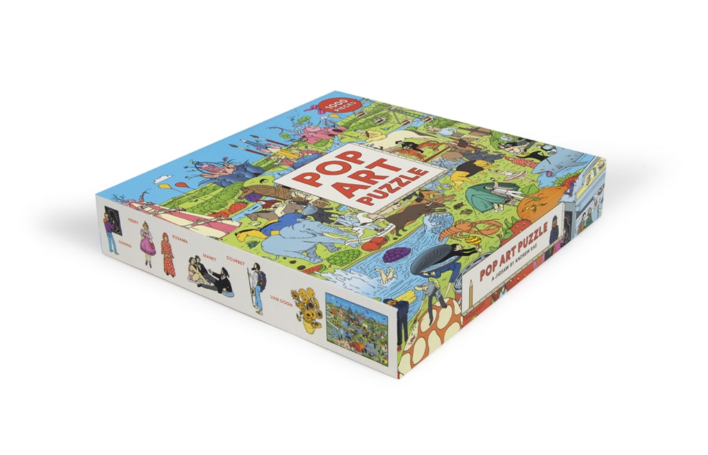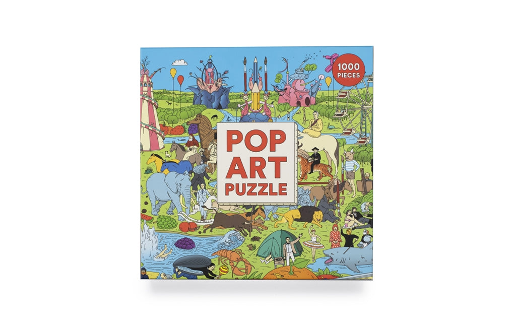1000-PIECE PUZZLE featuring a madcap pop art scene in fantastic detail, ranging through time from the Dutch masters to Kusama's dots