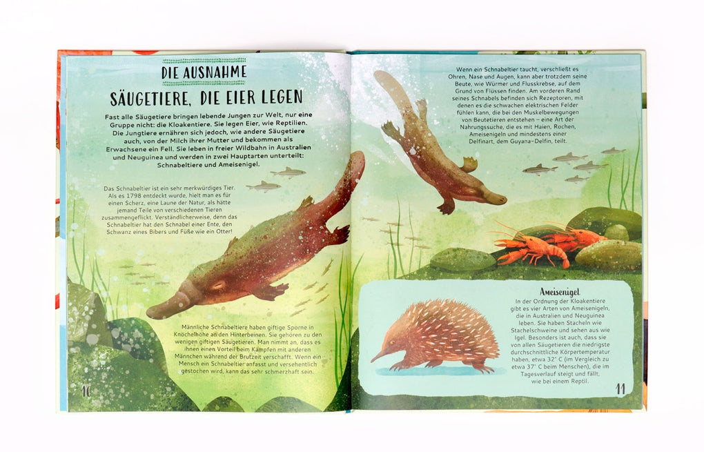 Und dann gibt es da noch seltsame Wesen, die eigentlich in keine der Gruppen passen, wie eierlegende Säugetiere oder Fische, die auf Bäume klettern! Große und kleine Leser*innen werden aus dem Staunen nicht herauskommen.