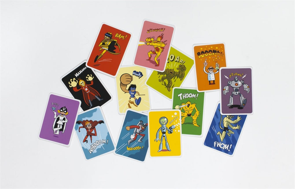 With the cards divided equally and held face down, players turn over their top cards into a pile in the middle. When players turn over matching superheroes or villains, the first player to shout 'SNAP!' wins all the cards in the pile. The winner is the first player to collect all the cards. Suitable for two or more players.