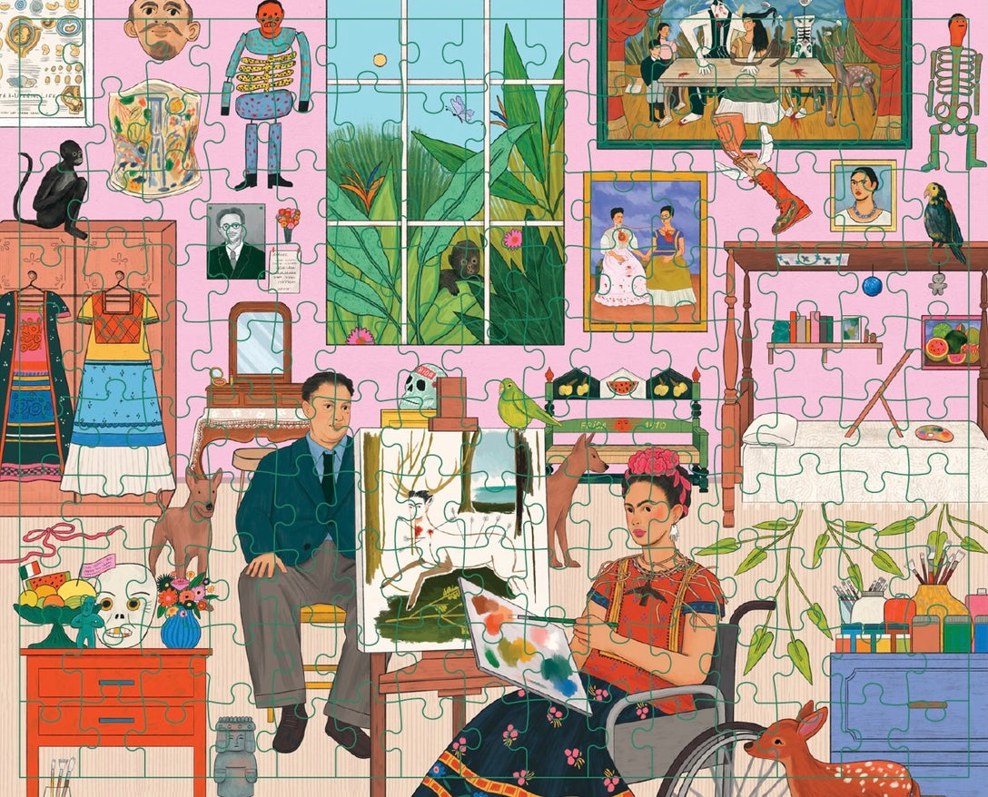 Entdecke Frida Kahlo auf neue Weise, indem du ihre Selbstporträts nachstellst, Rätsel löst oder ein von Frida Kahlo inspiriertes Festmahl kochst. Oder du setzt ein 150-teiliges Puzzle von Fridas Atelier zusammen und entdeckst dabei fünf ihrer Bilder, zwei Liebhaber und sieben ihrer Haustiere. Du kannst aber auch ein modisches Zeichen setzen und den beiliegenden Bügelflicken auf dein Lieblingsstück bügeln. All das wird begleitet von einem umfassenden Leaflet mit jeder Menge Wissenswertem, einer Zeitleiste und den wichtigsten Orten aus Fridas Leben.