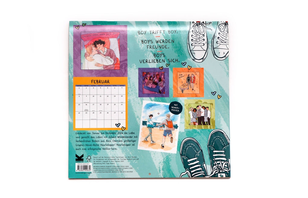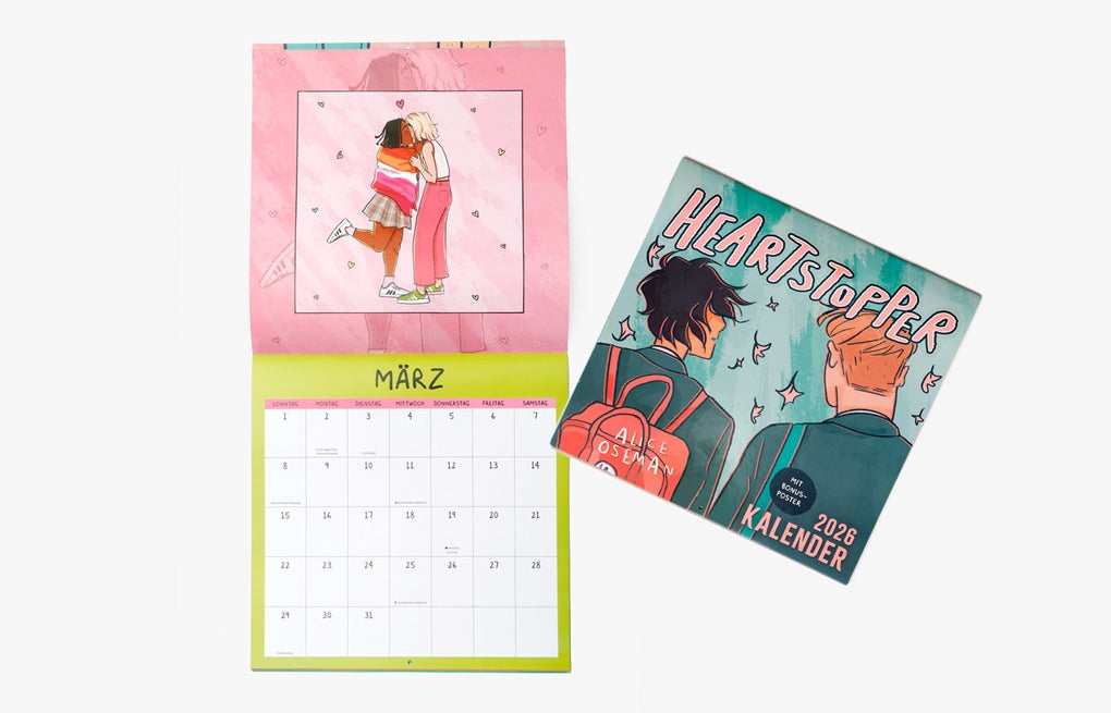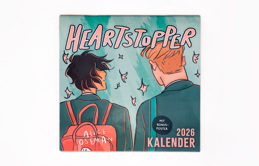 Entdeckt von Januar bis Dezember 2026 die Liebe und genießt das Leben mit diesem Wandkalender mit Bildern aus Alice Osemans großartiger Graphic-Novel-Reihe Heartstopper! Der Wandkalender holt Charlie Spring, Nick Nelson und weitere Figuren aus der beliebten Netflix-Serie in euer Zuhause - sogar deren Geburtstage sind bereits eingetragen! Ein Must-Have für alle Fans!