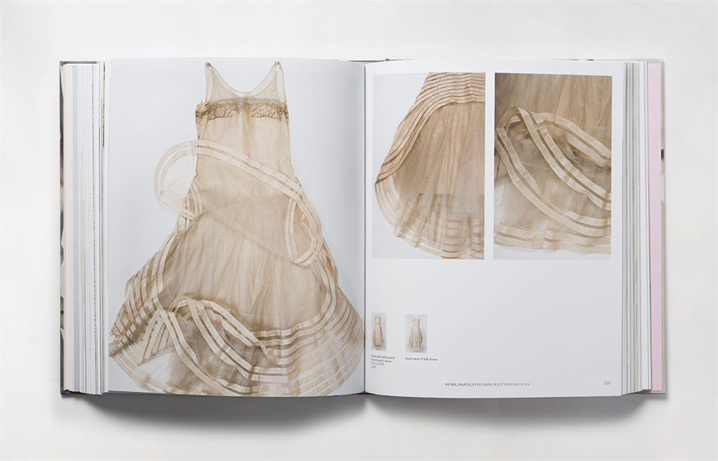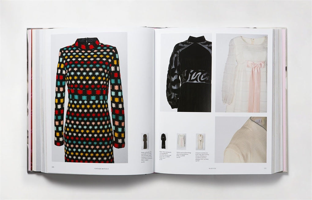 The images are arranged by detail: necklines; collars; sleeves; cuffs; pockets; fastenings and buttonholes; hems, darts, stitching and fitting devices; pleats, frills and flounces; embellishment; surface texture and print. Inner construction shots will also be included, along with images of the full garments providing context for the details shown.
